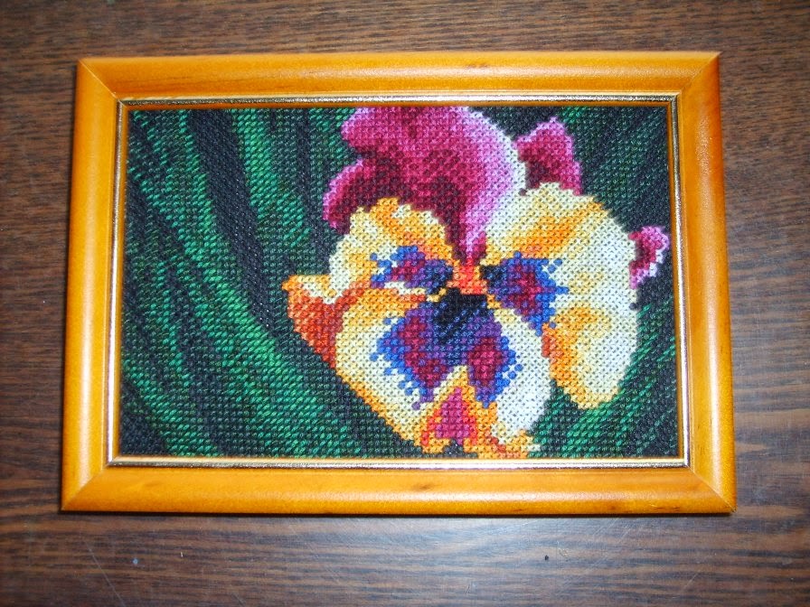 Что-то не спится. Лазила по компу, наткнулась на фотку со своей вышивкой. Я баловалась крестиком в доскраповую эпоху ))) Конкретно эта вышивка запомнилась чёрной канвой.